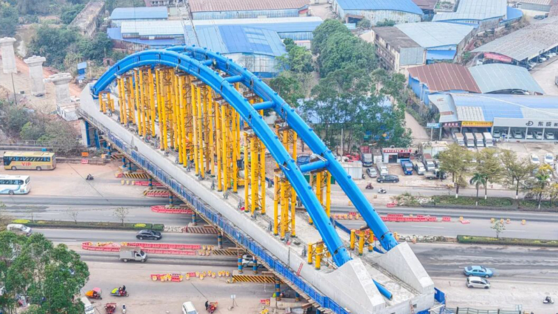 近日,平陸運河欽北線鐵路橋改建工程——跨欽州灣大道112米鋼管拱橋順利合龍,為后續(xù)工作及全線貫通奠定了堅實基礎(chǔ)。巨力索具作為本項目的鋼結(jié)構(gòu)專業(yè)分包單位,承擔了橋梁所有鋼構(gòu)件的制造和施工工作。