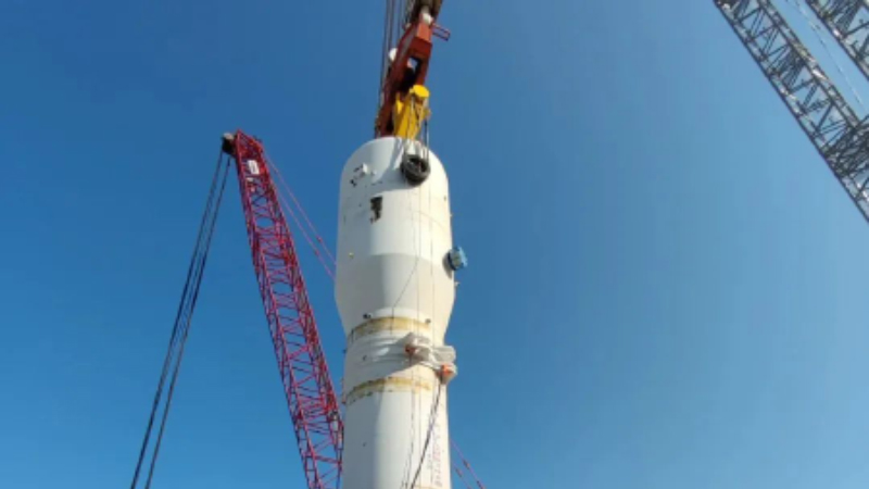 9月26日13時48分,隨著現場總指揮一聲令下,3200噸履帶式大吊車緩緩啟動,漳州核電1號機組首臺蒸汽發生器(第二環路)經過翻轉、提升、變幅等一系列既定工序,于9月27日1時06分順利吊裝就位。整個吊裝過程中所用的吊梁、配套索具、提吊耳軸均由巨力索具提供,為后續主設備吊裝奠定了堅實基礎,漳州核電項目“主設備先行引入法”施工贏得“開門紅”。