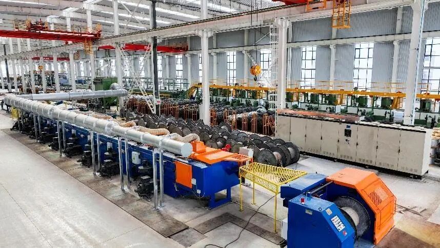 絞線穩(wěn)定化生產(chǎn)線:2條絞線穩(wěn)定化生產(chǎn)線,通過穩(wěn)定化處理,在鋼絲表面形成一層致密的氧化膜,進一步增強其防銹能力。