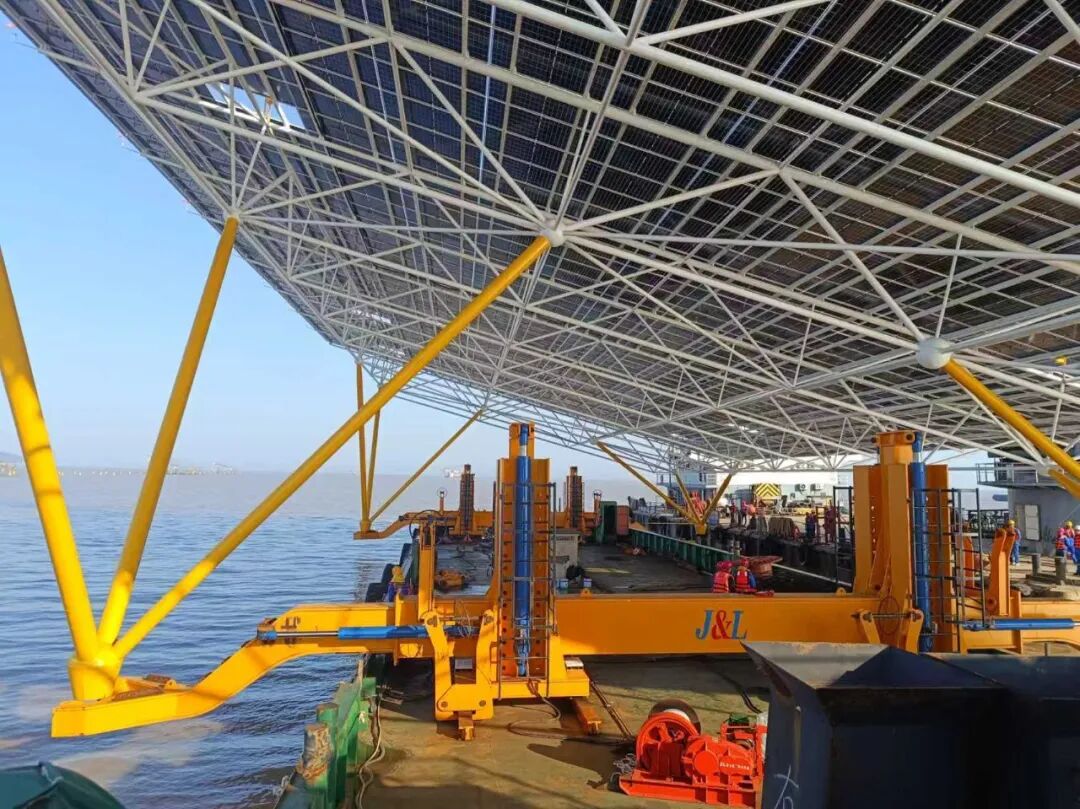 海上光伏整體結(jié)構(gòu)浮托運輸調(diào)節(jié)裝備已經(jīng)成功應(yīng)用于國華HG14海上光伏項目上,國華HG14海上光伏項目是目前全球最大的開放式海上光伏項目,該項目首次應(yīng)用浮托法安裝,通過本裝備解決了常規(guī)作業(yè)方式無法在淺海安裝的難題,提升了安裝效率。得到了客戶的認可。