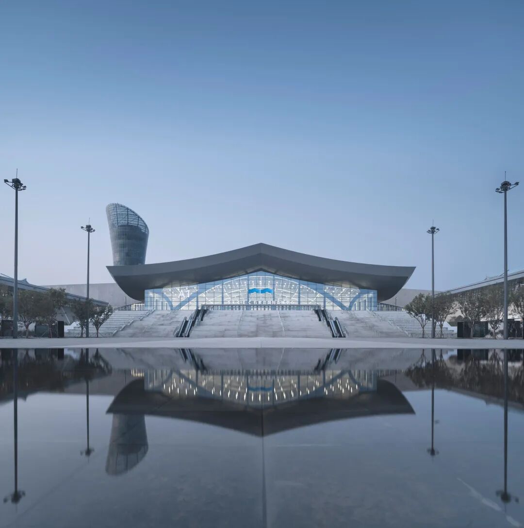 該項目采用國內首創的“輪輻式張弦鋁合金網殼”屋頂結構體系,融合單層網殼與索承張拉技術,實現輕盈造型與高承載力的完美統一。同時,創新采用“漣漪懸索網格結構”,呼應雄安新區生態城市理念,展現獨特建筑美學。