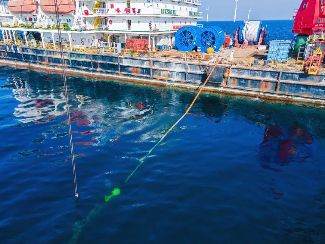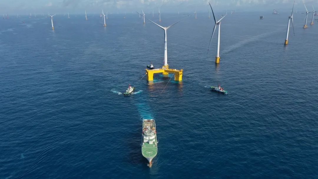 6月7日,海上漂浮式風機永久系泊索在廣東陽江項目場完成水下鋪設,為后續海上風機浮式基礎平臺到達安裝打下堅實基礎。
