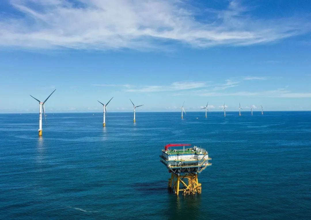 12月7日13時37分,全球首臺抗臺風型漂浮式海上風電機組,在廣東陽江海上風電場成功并網發電。