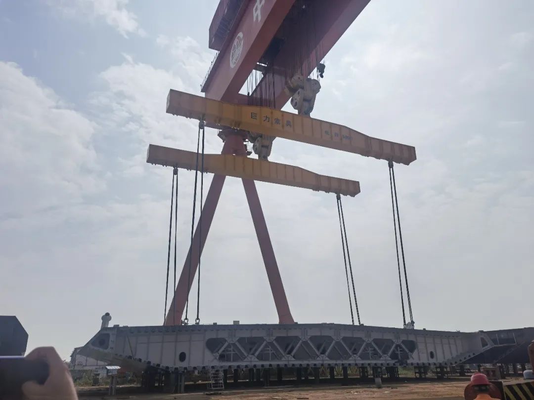 11月19、20日,長133米,寬20米,高4.7米,重1700噸的大型鋼箱梁段運(yùn)至指定位置,巨力索具研發(fā)制造的鋼箱梁吊具全程保障該項(xiàng)目吊裝順利實(shí)施,標(biāo)志著深中通道G05標(biāo)段泄洪區(qū)鋼箱梁大節(jié)段XG9L出海平臺(tái)在中鐵山橋南方裝備試運(yùn)行成功。此次成功試運(yùn)行為深中通道鋼箱梁大節(jié)段順利啟運(yùn)奠定了堅(jiān)實(shí)基礎(chǔ)。