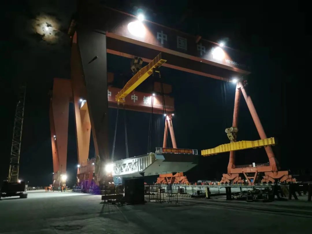 千噸級(jí)吊裝 成果再上新重量1700噸為全橋最重鋼箱梁