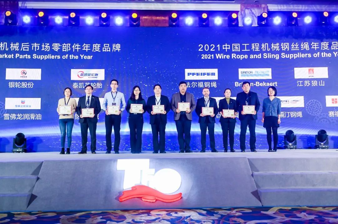 本次峰會,巨力索具榮獲“2021中國工程機械鋼絲繩年度品牌”,擁有36年的鋼絲繩制造經驗,制造工藝已達到國際先進水平,最大可滿足用戶2160Mpa抗拉強度需求,最小破斷拉力值達到國際一線品牌標準,且相比進口產品成本更低,能夠有效的降低主機廠的采購成本。
