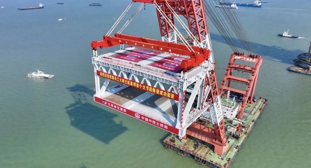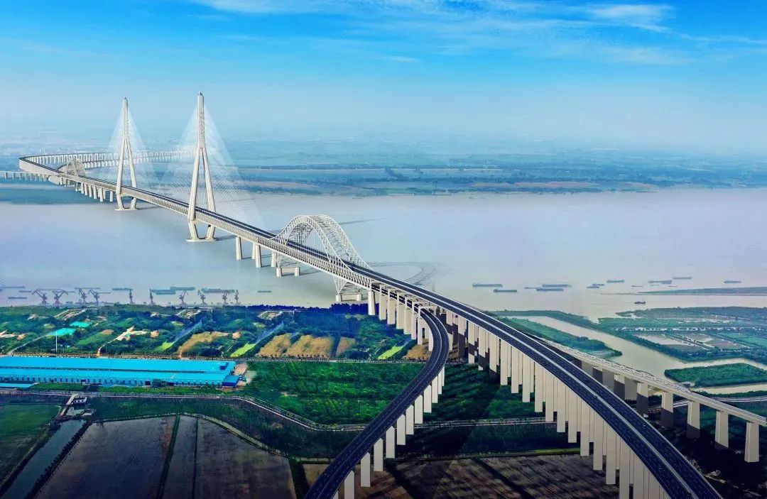 常泰長江大橋是世界上首座集高速公路、城際鐵路、一級公路為一體的過江通道,其主航道為主跨1176米的斜拉橋,跨度位居世界首位,具備“四個國際首創”和 “六個橋梁之最”。建成后對促進長三角區域更高質量一體化發展,加快揚子江城市群建設具有重要意義。
