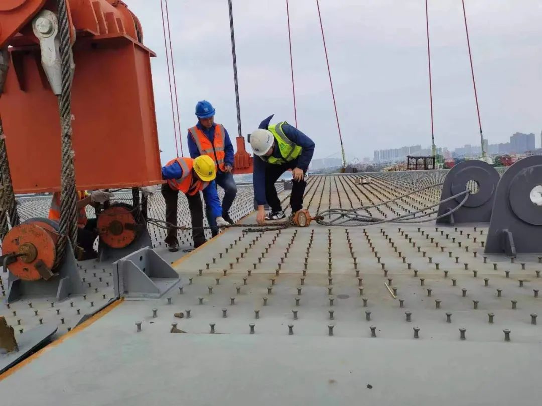 節后開工第一天,廣西橫州特大橋項目現場一派熱火朝天。巨力索具主要負責該項目纜索與鋼箱梁施工安裝,為確保施工進度,浦江纜索公司員工堅守崗位,嚴守職責,克服環境等困難,穩步推進各項作業進度,以高質量工程建設助力公司高質量發展。